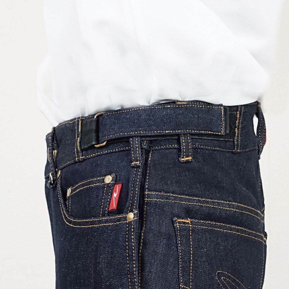 一般のジーンズには無い、ウエストが幅広くアジャスト可能なルーズフィット機能と、ライディング専用の立体パターンのため、ジャストフィットの穿き心地を提供。