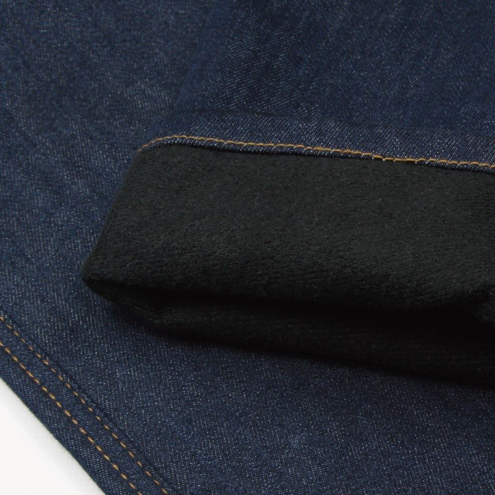 デニムの中間層は、防風防寒透湿ウインドガードで外気の侵入をブロック、裏起毛で体熱の保温層を作り体温低下を和らげます。この3層構造により、高い防寒性を発揮。