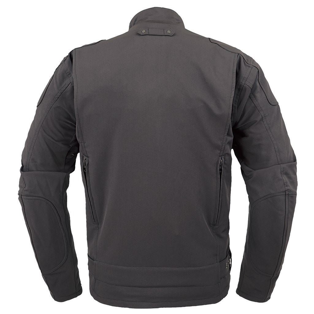 柔らかい着心地とストレッチ性のある、ほどよい通気性を備えたソフトシェルを採用したビンテージライディングジャケット