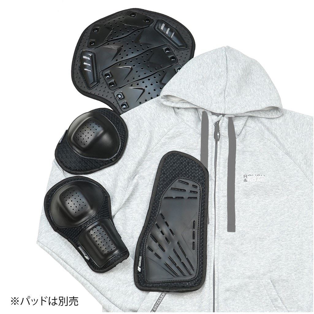 バイクに乗る時は胸肩肘脊椎パッドフル装備可能なパッドポケットを装備した、バイク乗りのためのパーカーです。