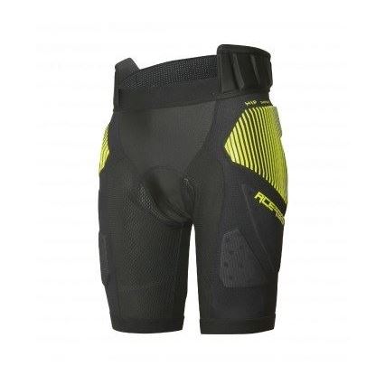 腰サイド腿サイド尾骨上部に衝撃吸収性の高い革新的な多層ソフト素材が程よい厚みで配置されたライディングショーツ。