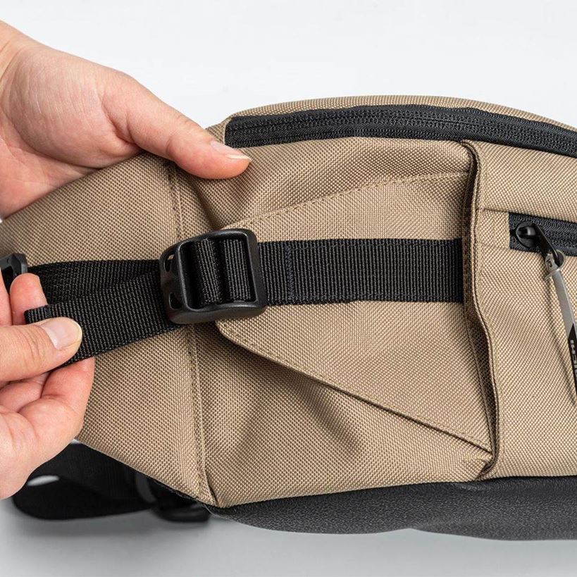 ・フロント両サイドにあるコンプレッションベルトにより、バッグ内の荷物が少ない場合に容量の調整が可能です。