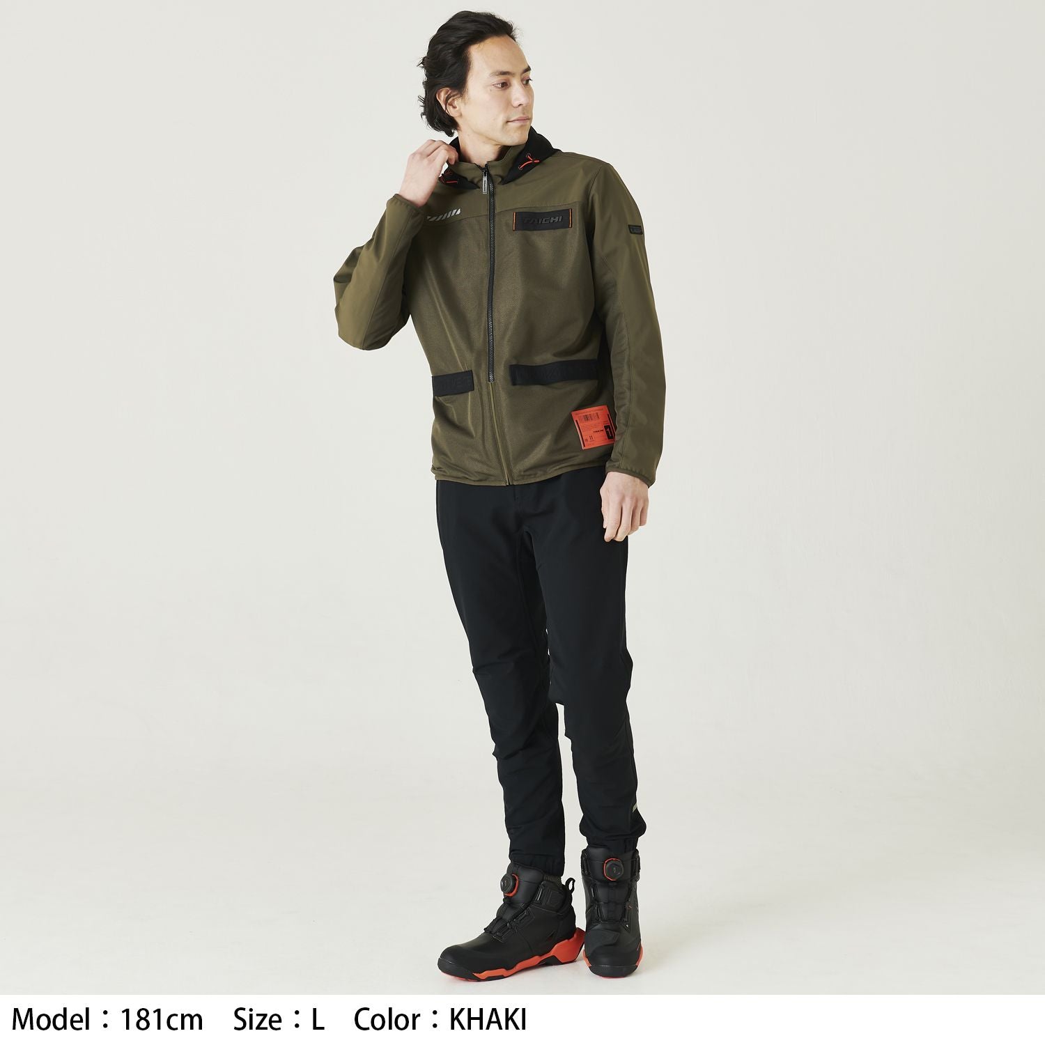 ・広範囲に配置されたメッシュ部分に加え、布帛部分にも通気性をもたせることで走行風を効率よく取り入れ、暑い時期のライディングを快適にします。