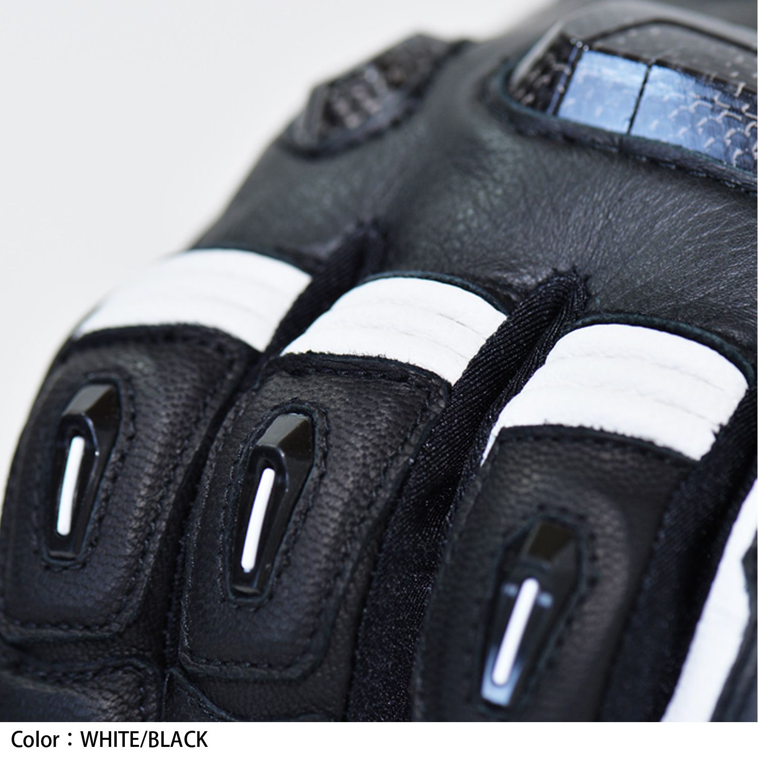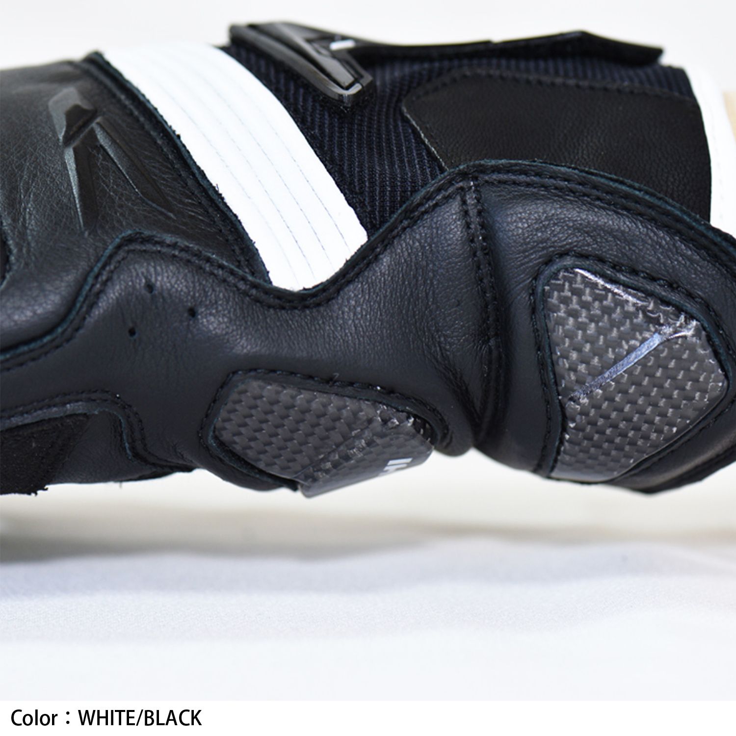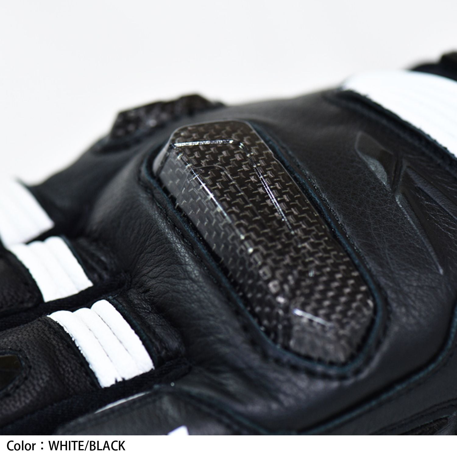 ・甲だけでなく、掌、カフ部にもカーボンプロテクターを採用し、手首周りの安全性を高めるミドルカフグローブです。