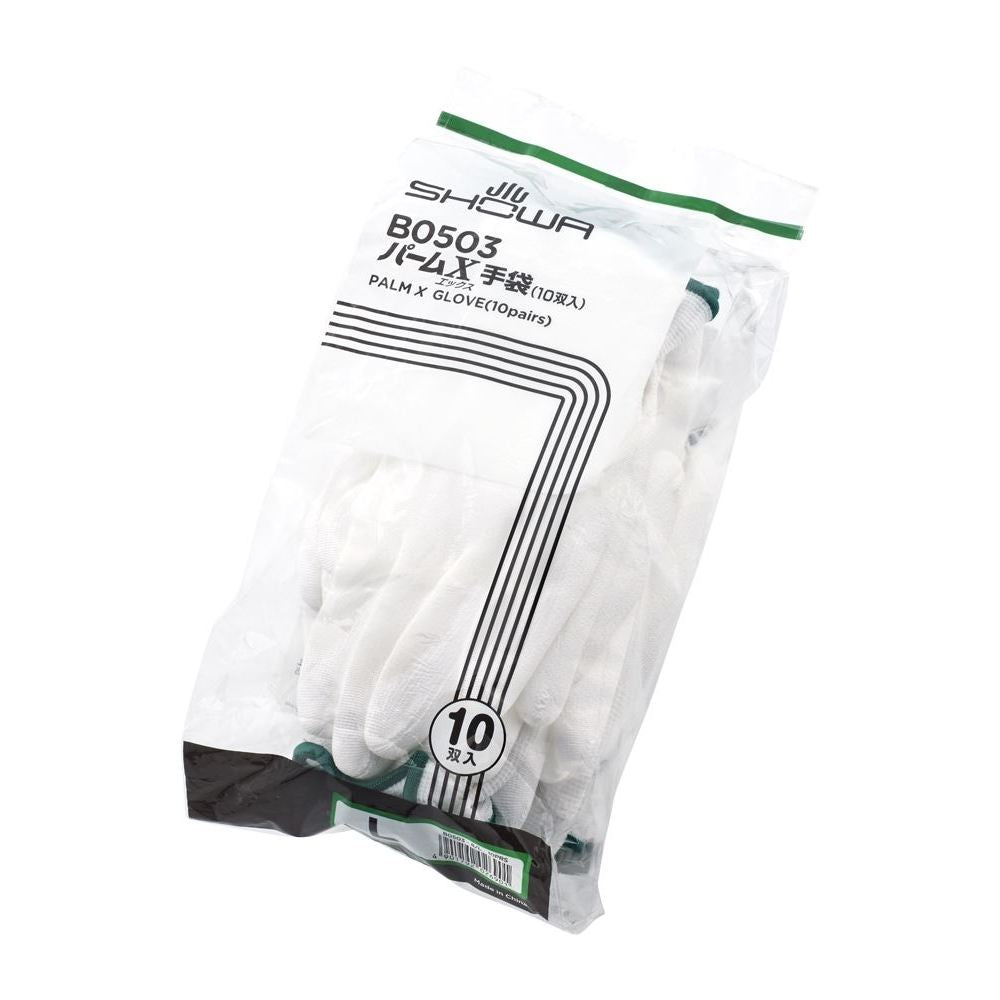 【 ショーワグローブ B0503-L B0503 パームX手袋 ホワイト L 10双 手袋 手のひらコート手袋 シームレス編み手袋 】