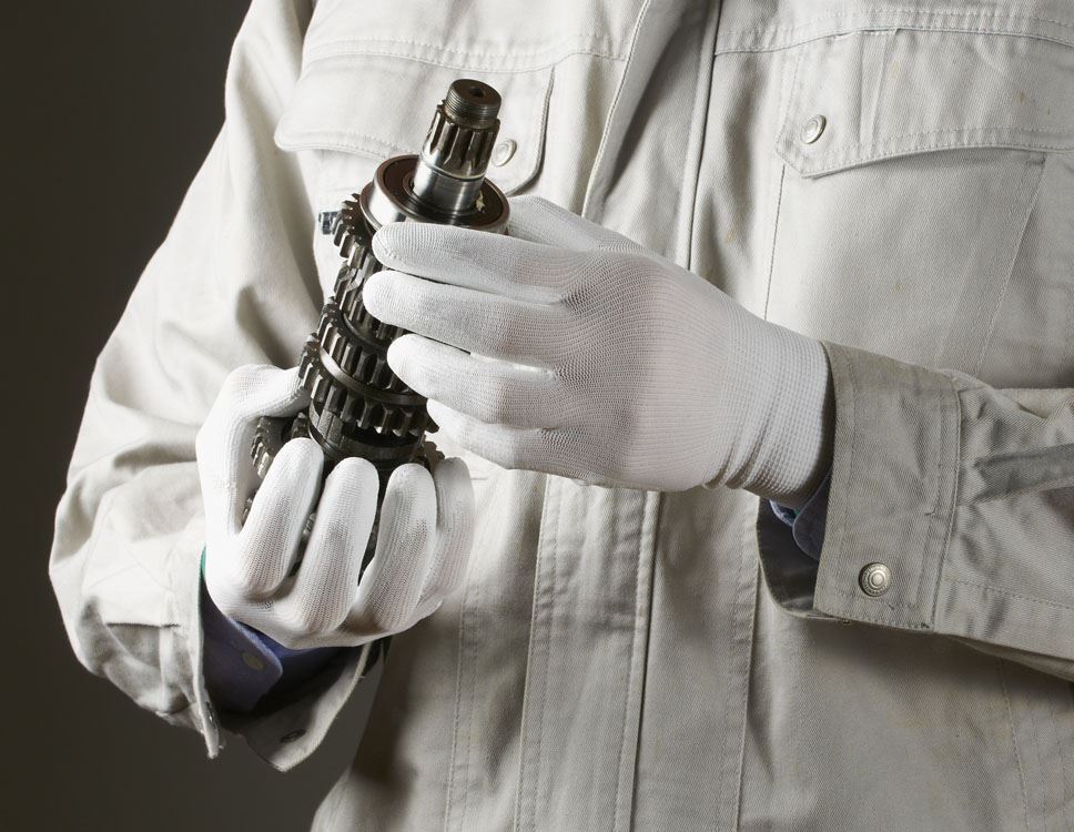 ・繊維部分は編み目が細かく縫い合わせのない、独自の13ゲージ・シームレス編み手袋です。