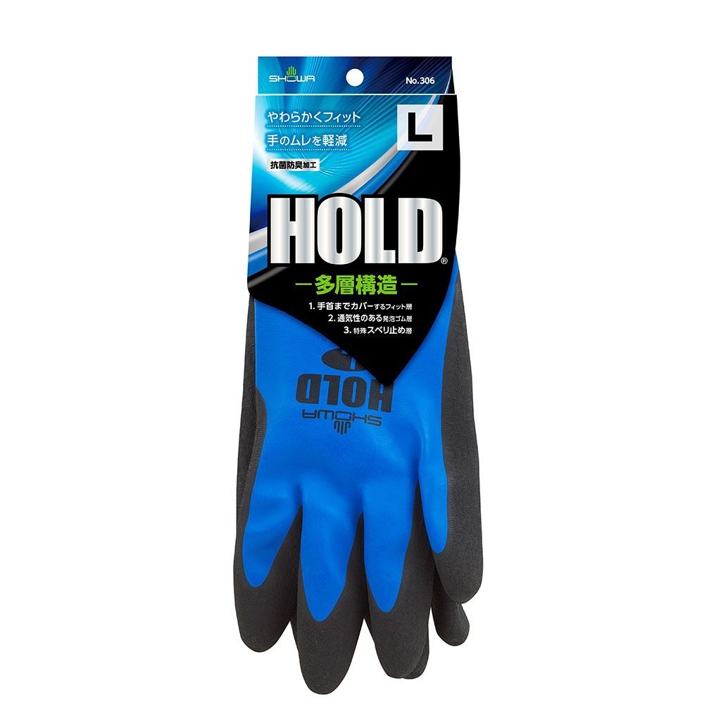 【 ショーワグローブ NO306-L タグツキ No.306 HOLD ホールド フルコートタイプ ブルー L 1双 手袋 フルコート手袋 】