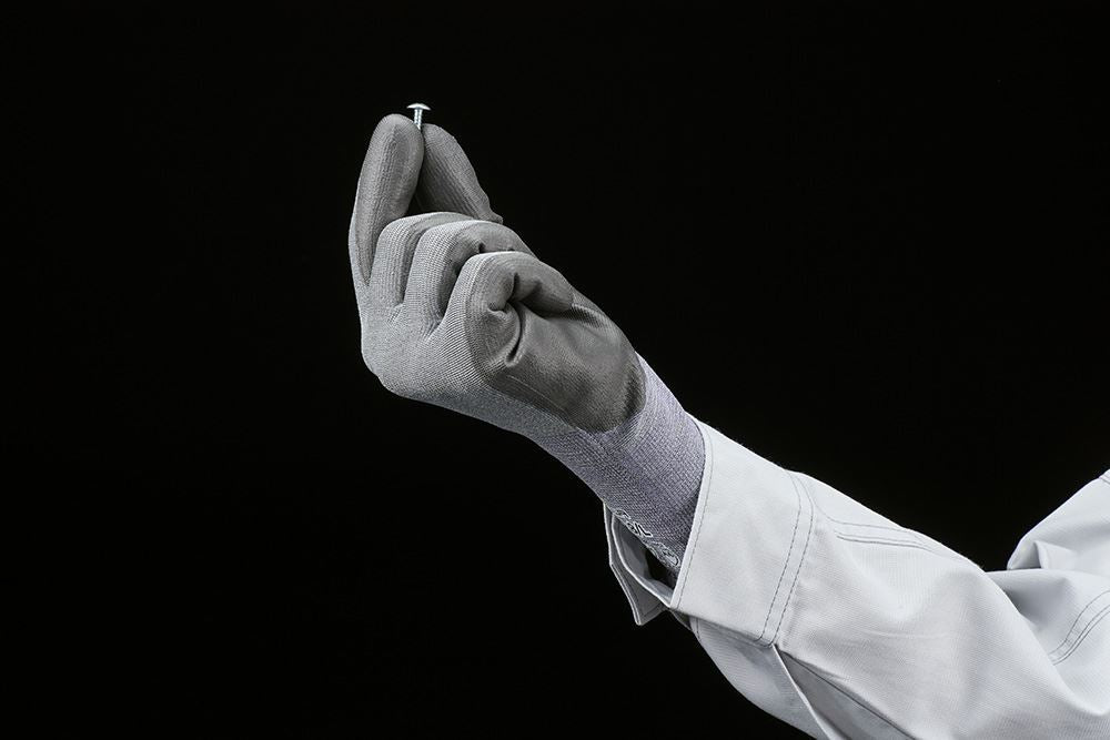 繊維部分には、特殊な高強度ポリエチレン糸を採用。高い耐切創レベルを実現しました。