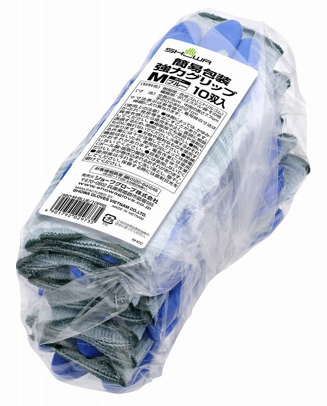 【ショーワグローブ NO360-M10P 簡易包装強力グリップ ブルー Mサイズ 10双入 スベリ止め 抗菌防臭 軍手 セット 作業用 手袋】