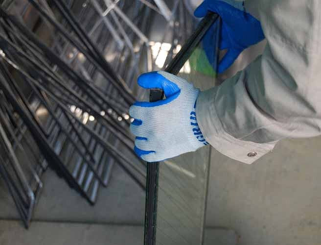 ・繊維部分は編み目が細かく縫い合わせのない、独自の10ゲージ・シームレス編み手袋です。