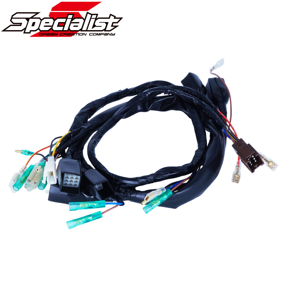 スペシャリスト製のメインハーネス、センターハーネス、インジケーターハーネス、テールハーネスの一式セットです。
