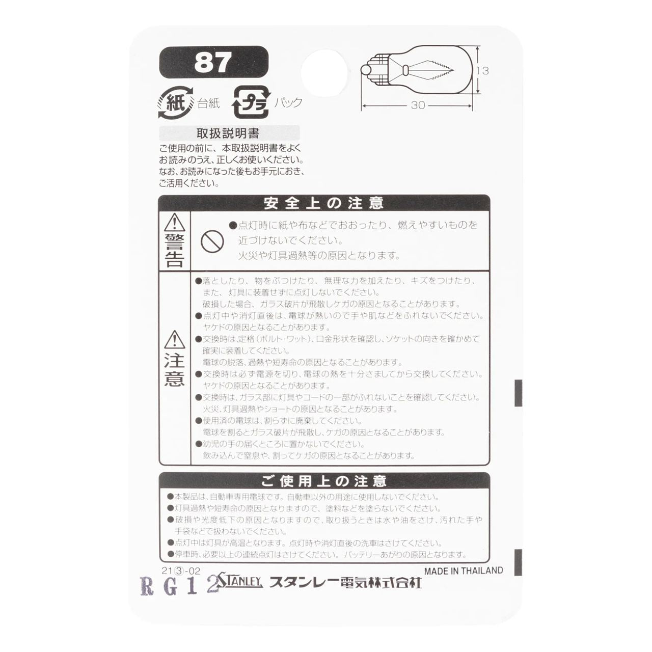 【スタンレー NO.87 ノーマル電球 T13 12V 10W クリア 1個入 ウインカー バイク 二輪車用 バルブ 電球 電装品 STANLEY】
