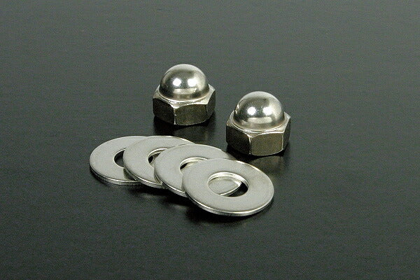 ノーマルのスチール製ナット(メッキ)は腐食問題がある為、武川では耐腐食性に優れたステンレス製ナット及びワッシャを採用しました。