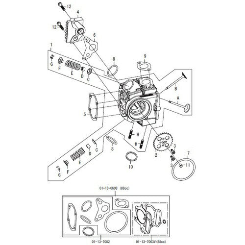 ・当製品はクローズド競技用として開発した製品ですので、一般公道では使用出来ません。もし、一般公道で使用する場合は、ベース車両が50ccの場合、排気量アップに伴い原付1種から原付2種になります。道路運送車両法の保安基準を充たし、原付2種登録が必要となります。ユーザー様側で、道路運送車両法の保安基準をご確認の上基準を充たし登録下さいます様お願いいたします。シリンダーヘッド適応車: