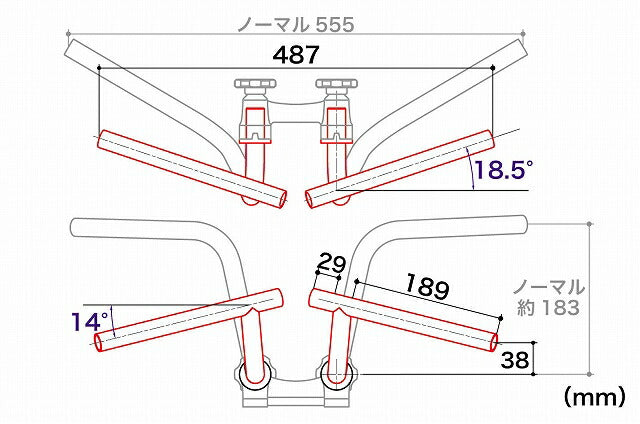 ノーマルより低いハンドルポジションに加え、最適な絞り角と垂れ角を設定する事でスポーティーな前傾姿勢を演出します。