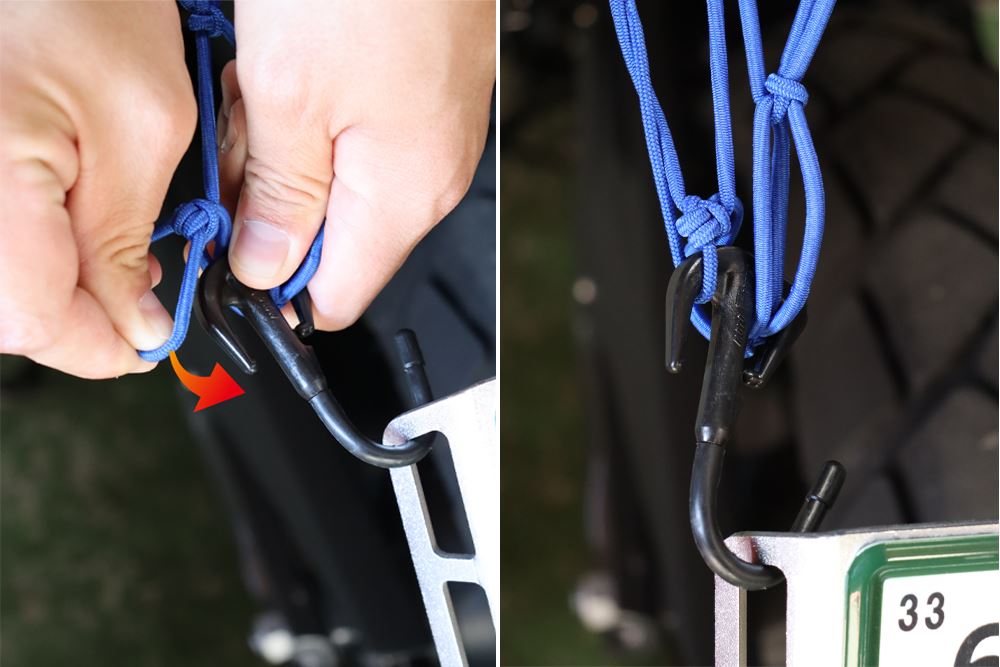 最強フックと、大幅伸縮ゴムでガッチリ荷物をホールド
