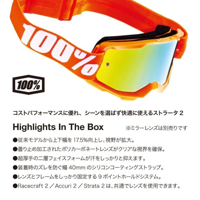【100% 50027-00013 24 STRATA2 ゴーグル ブラック バイク 目 紫外線 保護】