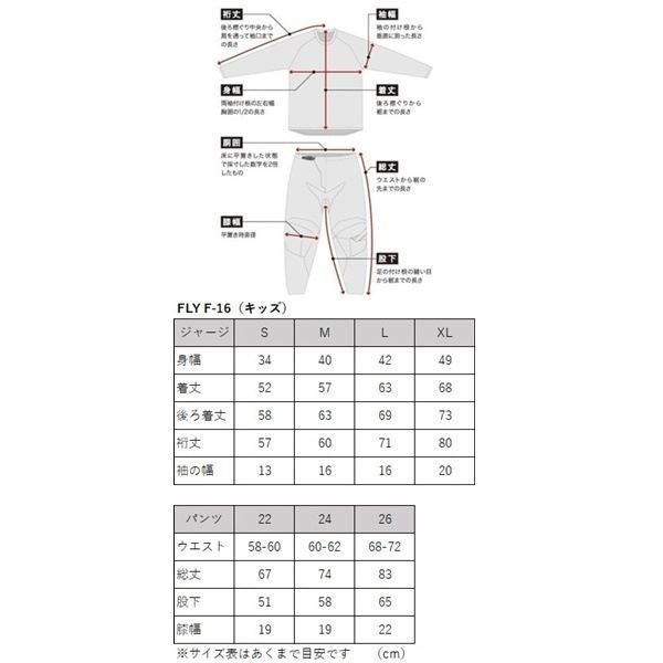 ※キッズウエアはメーカー、年度、モデルにより大きさが大幅に異なる場合がございます