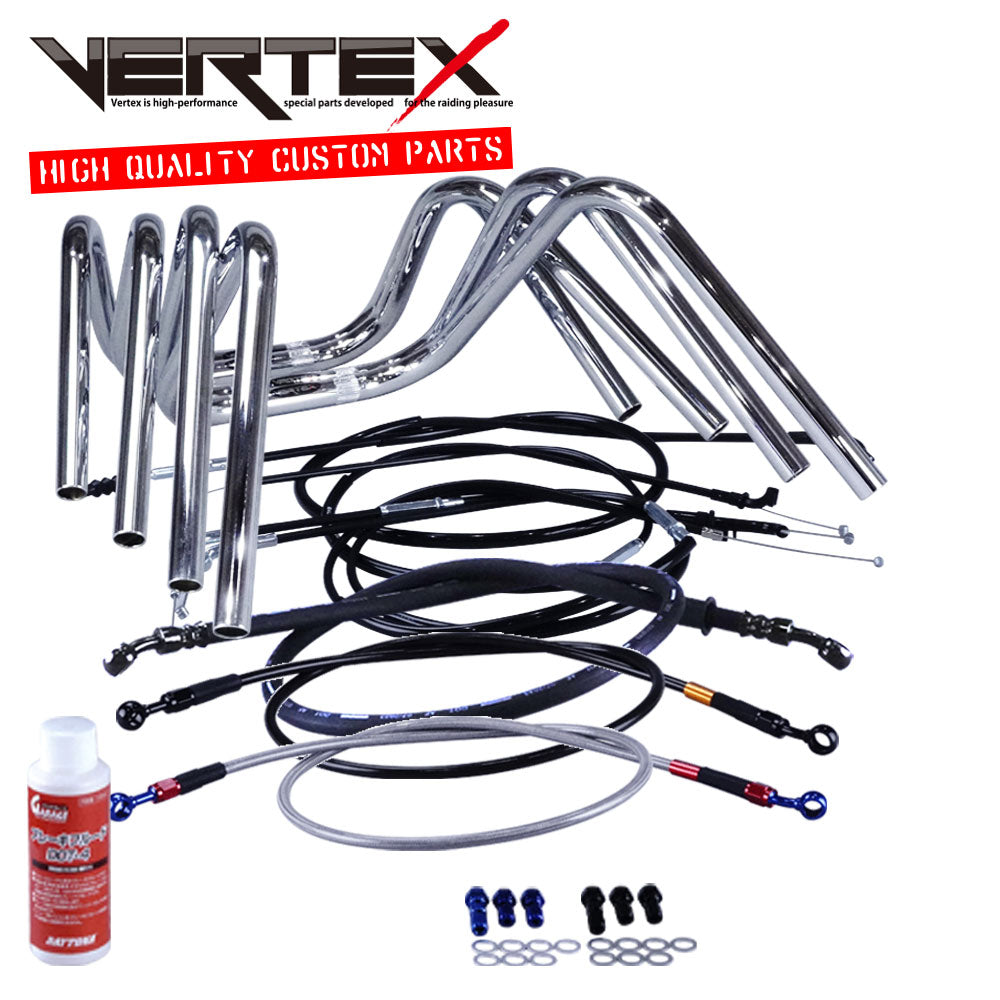【XJ400/E/D しぼりアップハンドル セット 絞りアップハン ワイヤー シボリ ハンドル 80-83年 バーテックス】