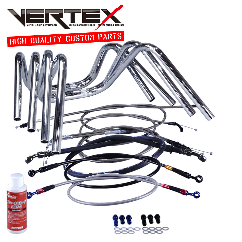 【XJ400/E/D しぼりアップハンドル セット 絞りアップハン ワイヤー シボリ ハンドル 80-83年 バーテックス】