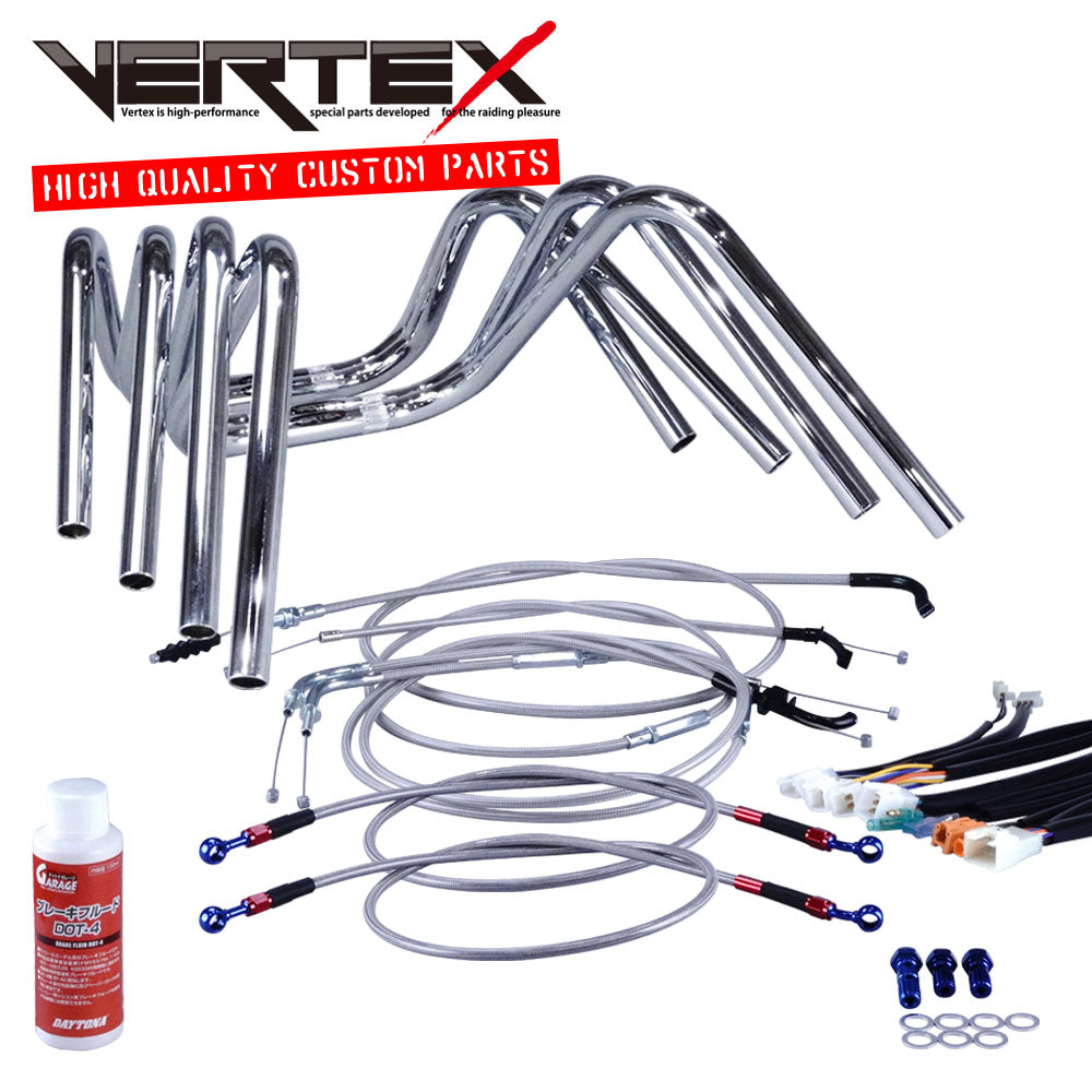 【RZ250 しぼりアップハンドル セット 絞りアップハン ワイヤー シボリ ハンドル 84年 51L バーテックス】